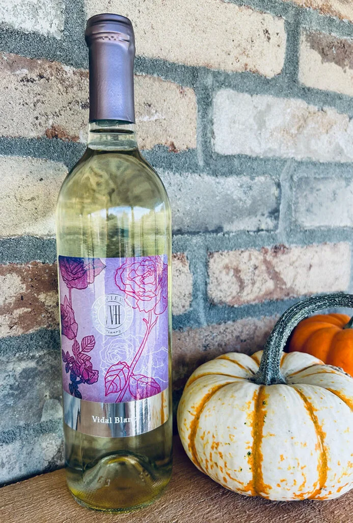 Not dry and not sweet, this Vidal Blanc carries light notes of tropical hints of pineapple, white peach, and a touch of grapefruit and citrus. A little residual sugar balances the tartness of the fruit flavors to leave a crisp but smooth finish.